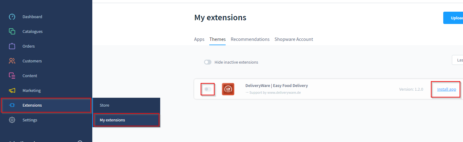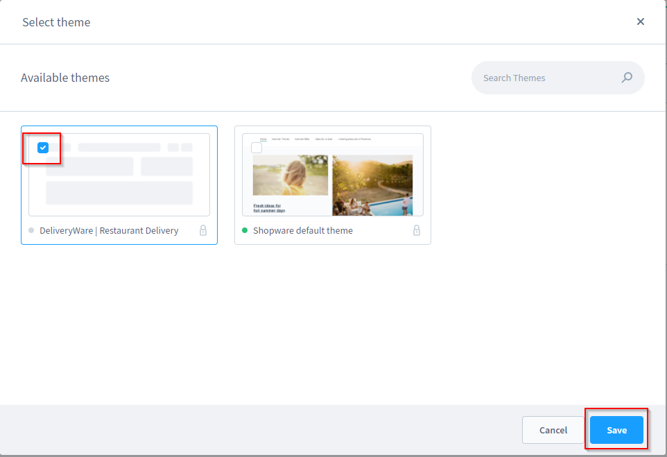 Unter dem Reiter "Themes" sollte nun DeliveryWare aufgelistet sein.