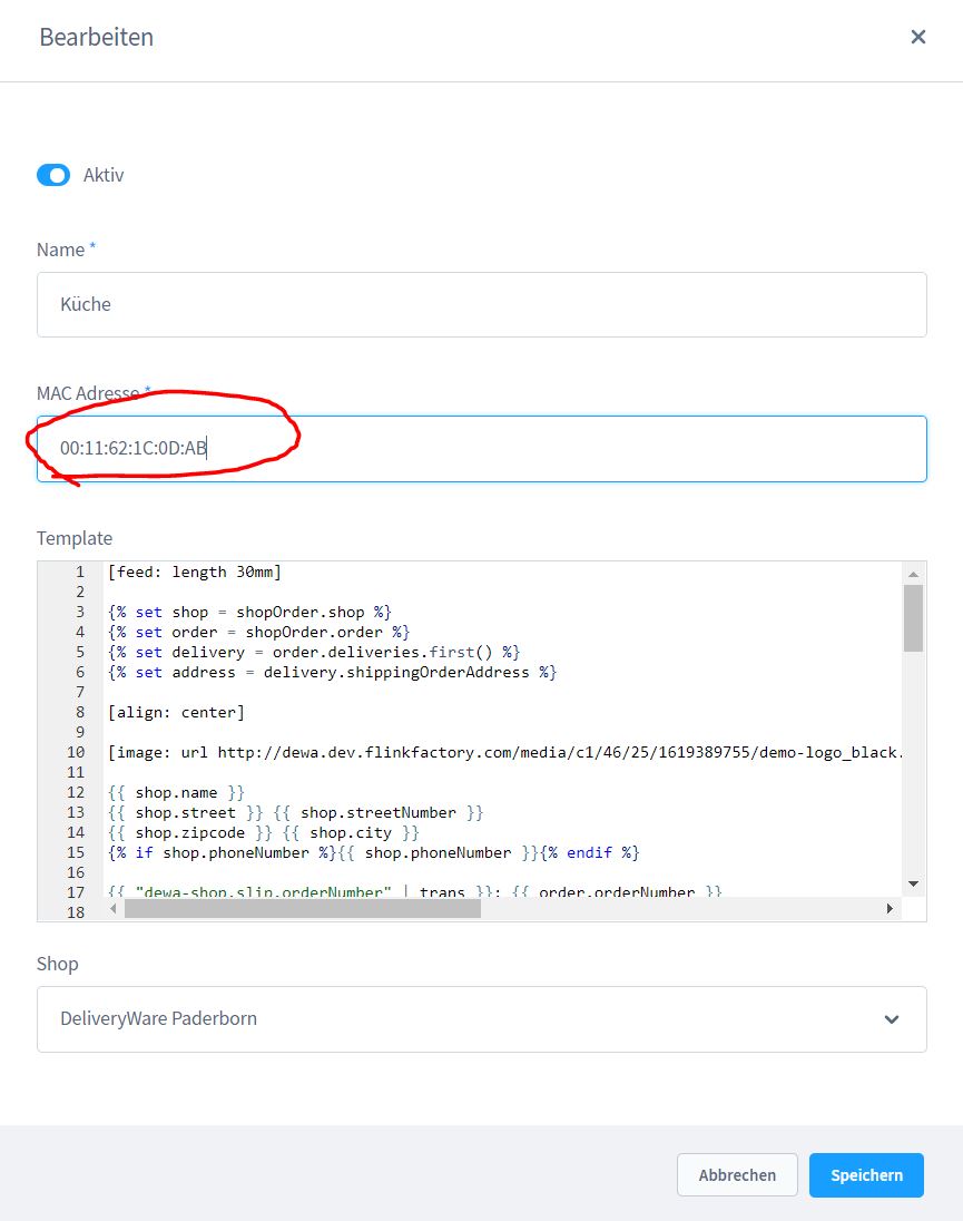 - Lege einen Drucker an und kopiere die MAC Adresse
