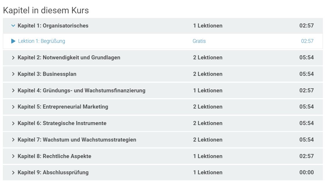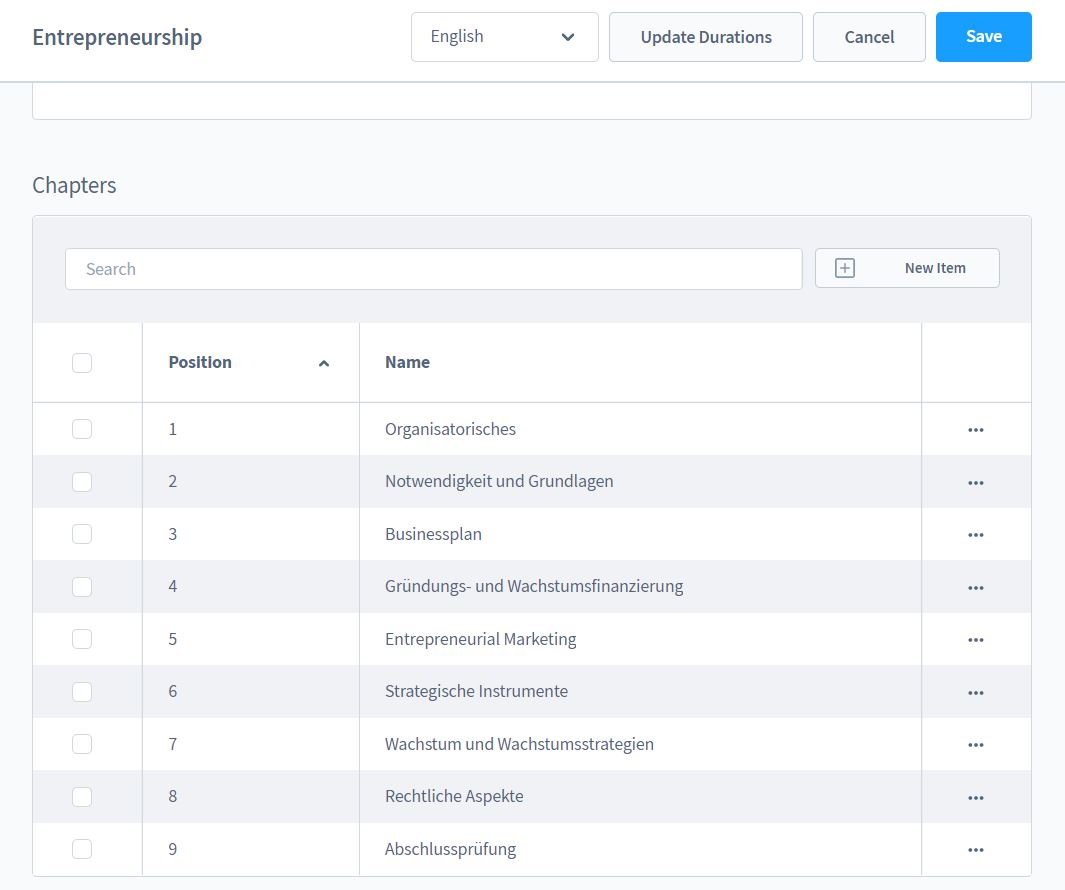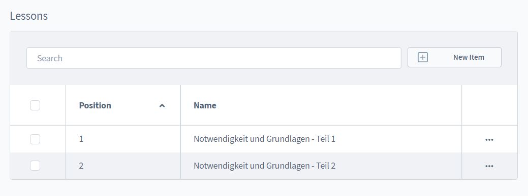 Du erreichst die Detailseite des Kapitels oder der Lektion über das Kontextmenü in den kleinen Tabellen.