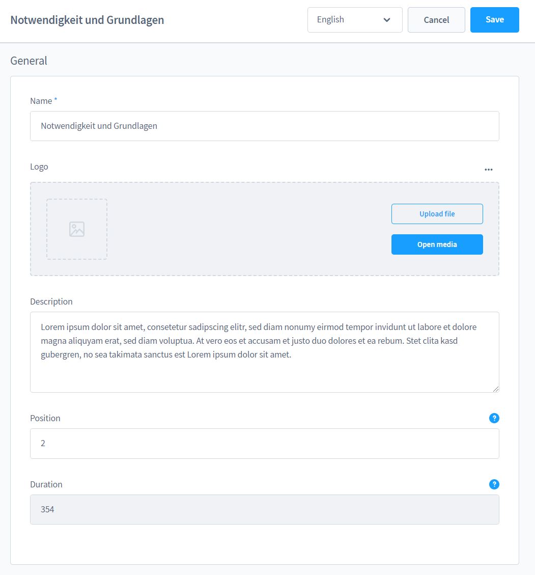 Die Laufzeit sagt aus, wie lang diese Lektion ist - die Angabe ist in Sekunden und muss aktuell manuell eingetragen werden.