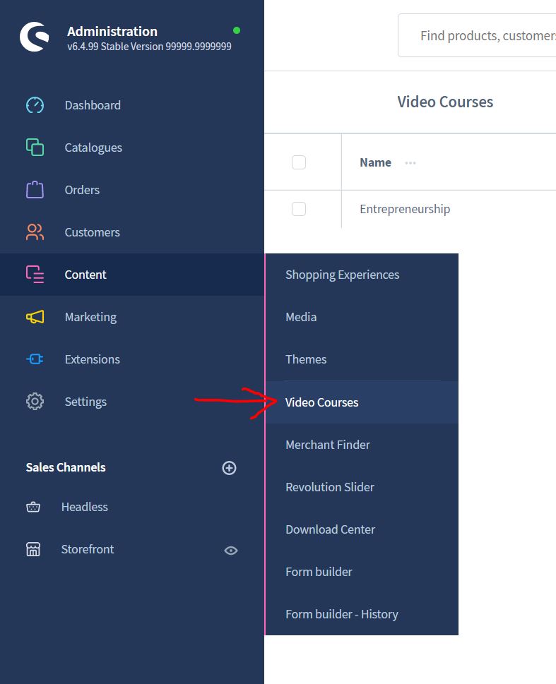 Gehe über den Menüpunkt Inhalte zu Video Kurse